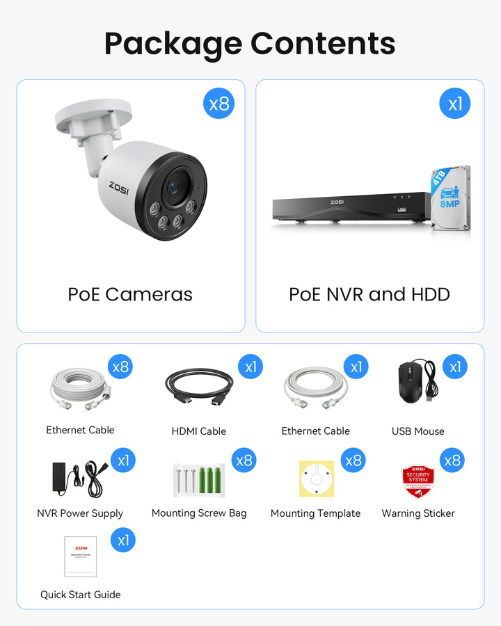 [{"id":621237600584,"handle":"4k-16ch-poe-camera","updated_at":"2025-12-04T20:17:30+08:00","published_at":"2024-05-07T16:49:30+08:00","sort_order":"manual","template_suffix":"","published_scope":"global","title":"4k 16ch poe camera","body_html":""},{"id":609256341832,"handle":"4k-poe-camera-system","updated_at":"2025-12-04T20:17:30+08:00","published_at":"2023-10-10T13:55:28+08:00","sort_order":"manual","template_suffix":"4k-poe-camera-system","published_scope":"global","title":"4K PoE Camera System","body_html":"\u003cdiv class=\"section\"\u003e\n\u003cdiv class=\"product-collection-banner\"\u003e\n\u003cdiv class=\"product-banner-content\"\u003e\n\u003ch2\u003eZOSI 4K PoE Security Systems\u003c\/h2\u003e\n\u003cp\u003eZOSI surveillance systems with high definition POE cameras, for delivering 4K high definition videos for greater clarity, even at night. Featuring all-weather design PoE IP cameras, AI human detection, color night vision, light \u0026amp; siren alarm, and working perfectly with ZOSI PoE Network Video Recorders(NVRs), provide 24\/7 indoor and outdoor surveillance.\u003c\/p\u003e\n\u003c\/div\u003e\n\u003c\/div\u003e\n\u003c\/div\u003e\n\u003cstyle\u003e\u003c!--\n.product-collection-banner {position: relative;width: 100%;height: 150px;background-repeat: no-repeat;background-size: cover;background-position: center;}\n .product-banner-content {width: 100%;position: absolute;top: 50%;left: 50%;transform: translate(-50%, -50%);-webkit-transform: translate(-50%, -50%);-ms-transform: translate(-50%, -50%);text-align: center;}\n .product-banner-content h2 {font-size: 46px;margin-bottom: 0.5em;}\n .product-banner-content p {max-width: 1200px;margin: 0 auto;line-height: 1.5;color:#111;}\n@media (max-width:750px) {\n .product-collection-banner {height: 130px;}\n .product-banner-content h2 {font-size: 26px;padding:0 10px;}\n .product-banner-content p {font-size: 10px;padding:0 10px;max-height:70px;color:#111;}\n}\n--\u003e\u003c\/style\u003e\n\u003csection class=\"product-func\" style=\"margin-top: 40px;\"\u003e\n\u003ch2 style=\"text-align: center;\"\u003eFeatures\u003c\/h2\u003e\n\u003cdiv class=\"product-bottom\"\u003e\n\u003cdiv class=\"bottom-item\"\u003e\n\u003cdiv class=\"item-content\"\u003e\n\u003cimg alt=\"\" src=\"https:\/\/cdn.shopifycdn.net\/s\/files\/1\/1487\/4888\/files\/PoE_090e0143-4bb9-4615-9014-bcded3bcf0c9.png?v=1668064954\"\u003e\n\u003ch3\u003ePoE True Plug\u0026amp;Play Installation\u003c\/h3\u003e\n\u003cp\u003e\u003cspan\u003e8-channel and 16-channel PoE security camera systems running one single PoE cable for power, video, and sound make it easier to set up and install.\u003c\/span\u003e\u003c\/p\u003e\n\u003c\/div\u003e\n\u003c\/div\u003e\n\u003cdiv class=\"bottom-item\"\u003e\n\u003cdiv class=\"item-content\"\u003e\n\u003cimg alt=\"\" src=\"https:\/\/cdn.shopifycdn.net\/s\/files\/1\/1487\/4888\/files\/4K_16_9.png?v=1668064954\"\u003e\n\u003ch3\u003e4K Super HD HDR \u0026amp; 16:9\u003c\/h3\u003e\n\u003cp\u003e\u003cspan\u003eWith ultra HD 4K high dynamic range cameras, capture more light, which improves color, contrast, and low-light performance. Enjoy 16:9 Widescreen Aspect.\u003c\/span\u003e\u003c\/p\u003e\n\u003c\/div\u003e\n\u003c\/div\u003e\n\u003cdiv class=\"bottom-item\"\u003e\n\u003cdiv class=\"item-content\"\u003e\n\u003cimg alt=\"\" src=\"https:\/\/cdn.shopifycdn.net\/s\/files\/1\/1487\/4888\/files\/AI_9c52d29a-759b-4e40-b804-72b21e1ccb9e.png?v=1690246994\"\u003e\n\u003ch3\u003eSmart Person \u0026amp; Vehicle Detection\u003c\/h3\u003e\n\u003cp\u003e\u003cspan\u003ePowered by smart AI detection, this camera identifies people and vehicles. Get notified of suspicious activity near your home or shop. No subscription fee required!\u003c\/span\u003e\u003c\/p\u003e\n\u003c\/div\u003e\n\u003c\/div\u003e\n\u003cdiv class=\"bottom-item\"\u003e\n\u003cdiv class=\"item-content\"\u003e\n\u003cimg alt=\"\" src=\"https:\/\/cdn.shopifycdn.net\/s\/files\/1\/1487\/4888\/files\/7acd2226c18bfdd02fdca0fec40dc14e.png?v=1668064954\"\u003e\n\u003ch3\u003eStarlight Night Vision\u003c\/h3\u003e\n\u003cp\u003e\u003cspan\u003eZOSI PoE security system with a starlight sensor provides clearer night vision for face and license plate recognition, even in low-light conditions.\u003c\/span\u003e\u003c\/p\u003e\n\u003c\/div\u003e\n\u003c\/div\u003e\n\u003cdiv class=\"bottom-item\"\u003e\n\u003cdiv class=\"item-content\"\u003e\n\u003cimg alt=\"\" src=\"https:\/\/cdn.shopifycdn.net\/s\/files\/1\/1487\/4888\/files\/291109d259ea5e2a386e52c4fe9fc5f0.png?v=1668064954\"\u003e\n\u003ch3\u003e24\/7 Video \u0026amp; Audio Recording\u003c\/h3\u003e\n\u003cp\u003e\u003cspan\u003eBuilt-in 3TB\/2TB\/1TB Security Grade Hard Drive, users are provided 24\/7 recording. Support memory stick or external Hard Drive and multiple recording options.\u003c\/span\u003e\u003c\/p\u003e\n\u003c\/div\u003e\n\u003c\/div\u003e\n\u003cdiv class=\"bottom-item\"\u003e\n\u003cdiv class=\"item-content\"\u003e\n\u003cimg alt=\"\" src=\"https:\/\/cdn.shopifycdn.net\/s\/files\/1\/1487\/4888\/files\/05d2d143f53d905b9ffde8bf636f0bdc.png?v=1668064954\"\u003e\n\u003ch3\u003eSmart \u0026amp; Active Deterrence\u003c\/h3\u003e\n\u003cp\u003e\u003cspan\u003eThese cameras are alert and ready to react to any potential danger via a smart light alarm system to keep troubles away even if you are asleep.\u003c\/span\u003e\u003c\/p\u003e\n\u003c\/div\u003e\n\u003c\/div\u003e\n\u003cdiv class=\"bottom-item\"\u003e\n\u003cdiv class=\"item-content\"\u003e\n\u003cimg alt=\"\" src=\"https:\/\/cdn.shopifycdn.net\/s\/files\/1\/1487\/4888\/files\/8ff8b02c5b456362ac32c42e6df2804f.png?v=1668064954\"\u003e\n\u003ch3\u003eTwo-Way Audio Intercom\u003c\/h3\u003e\n\u003cp\u003e\u003cspan\u003eBuilt-in mic and speaker let you to hear and speak to whomever is there in real time. Give a respond to the mailman or a warning to the unwelcome.\u003c\/span\u003e\u003c\/p\u003e\n\u003c\/div\u003e\n\u003c\/div\u003e\n\u003cdiv class=\"bottom-item\"\u003e\n\u00